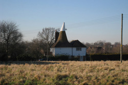 Kent州ではビールのホップが盛んに作られていました。ホップを乾操させるためのサイロはこのあたりの風物になっています。 | のどかなケントとサセックスの田園風景です。 |
