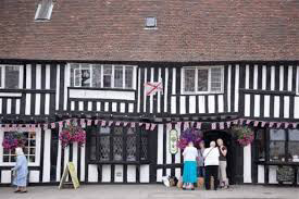 | ハーフティンバーの建物も中は有名なカフェやセレクトショップ。 | B&Bの朝の風景。イギリスの豊かさのひとつは このような朝食風景にもありますね。 |