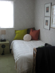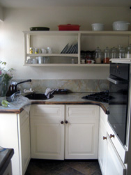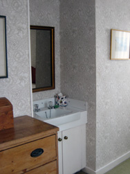 | イギリス人たちのバスタイムはシャワー中心です。バスタブにお湯を入れることが少ないので湿気もこもりません。バスルームがお部屋のようになる理由ですね。 | ゲスト用のベッドルーム。 | ベッドルームには必ずお湯のでるシンクが付いています。お部屋で洗面ができて便利です。 | こちらのカップボードの中にはスペアブランケットやリネンが収納されています。お部屋には作りつけのクローゼットがなく家具収納中心です。 |